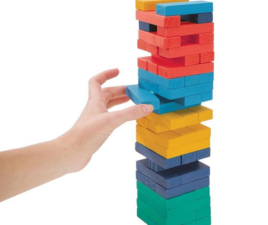 Let the weekend fun begin! Build your tower as tall as you can and remove one block from the middle or bottom and place it on top without knocking over the tower.