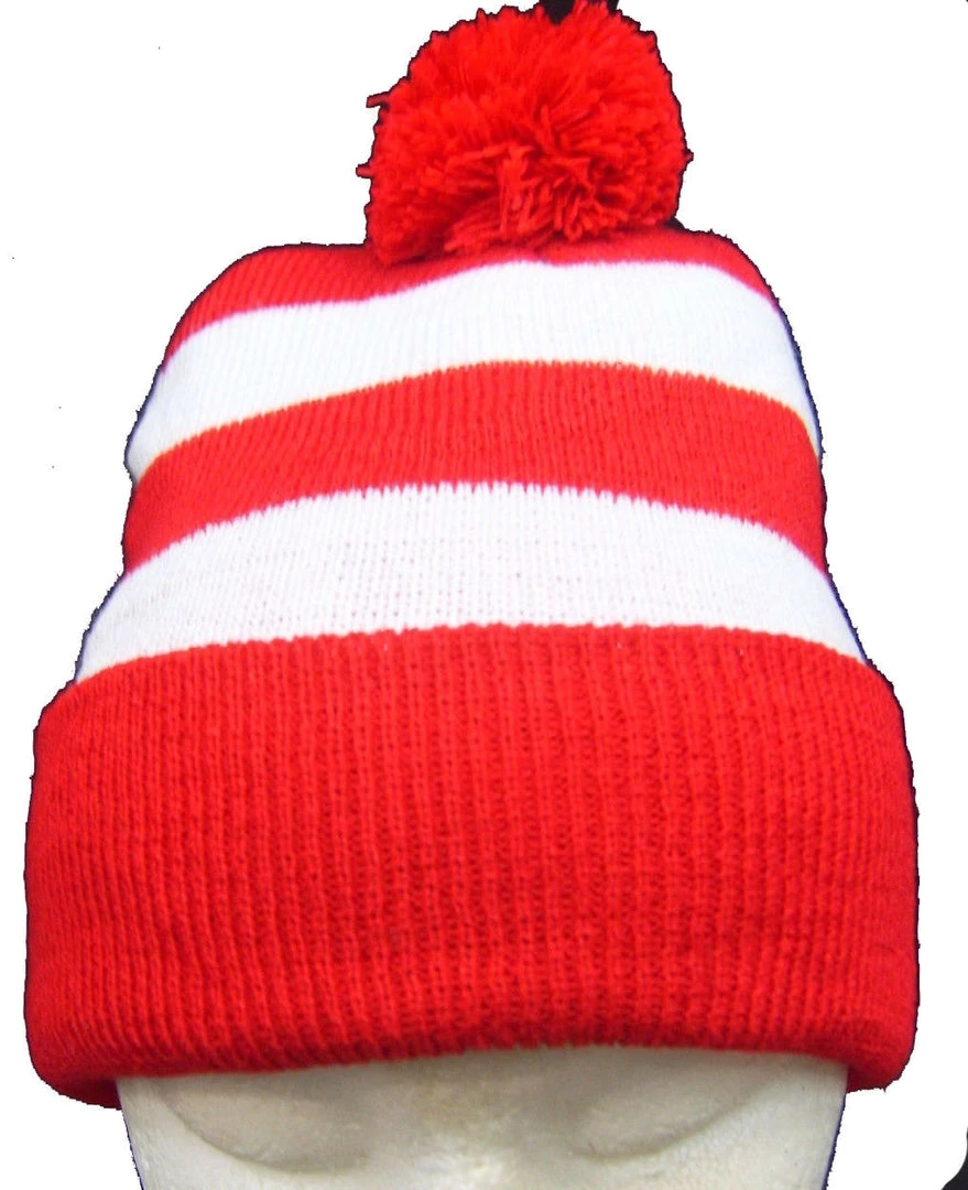 Look the part of everyoneโs favourite Where Wally with this red & White striped Hat