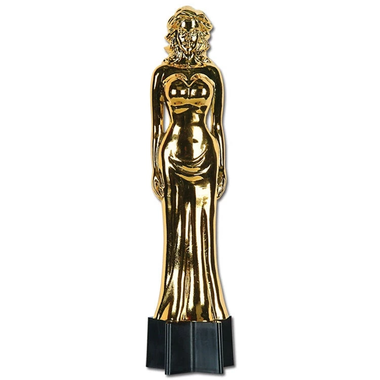 - This female trophy is perfect as a deluxe party favor or Hollywood theme centerpiece. We also have a Male figure trophy and Award Star trophy.