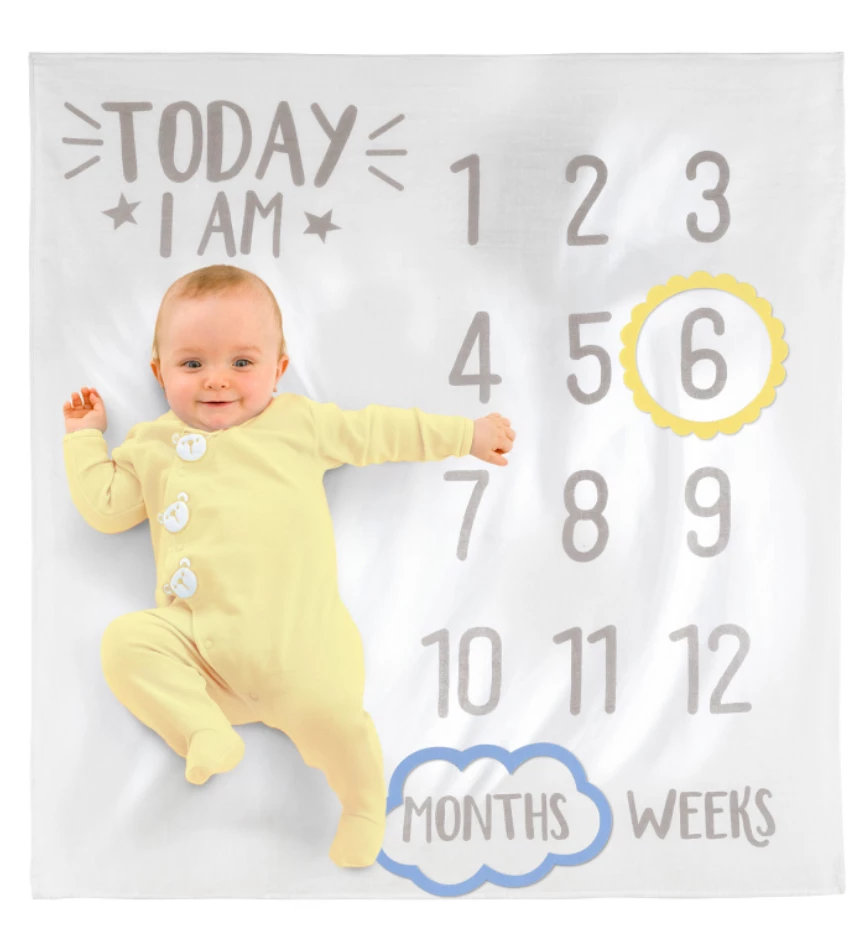 this milestone blanket. The white cotton blanket features the numbers 1