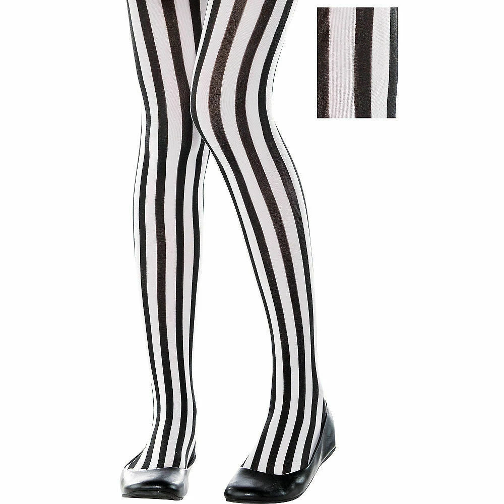 Balloon Agencies Black & White Vertical Striped Girls Tights