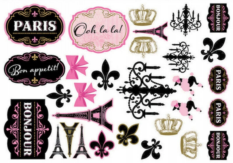 Add a touch of France to your party with these Day in Paris Mega Value Pack Cutouts! These black, pink, and gold cardstock cutouts feature crowns, bows, and more! Package includes 30 – 5″ (12.7cm), 6″ (15.2cm), 10 1/2″ (26.7cm) cutouts.