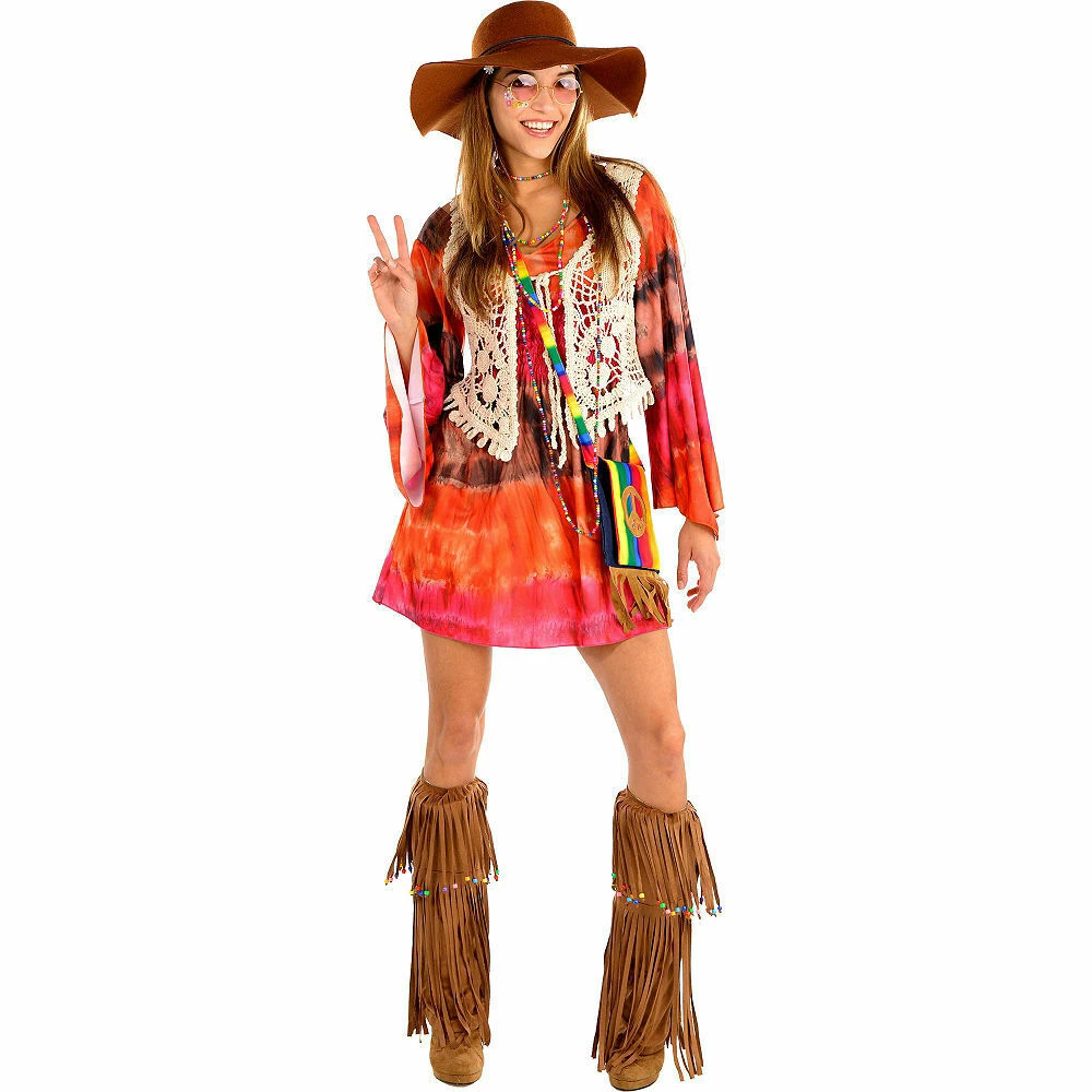 You’re looking hippie-chic in our Festival Tie-Dye Dress! This colorful boho dress features an orange, pink and brown tie-dye print with blousy sleeves, a short flared skirt and a gathered elasticized waist. It’s perfect for a ’60s or ’70s hippie costume, and makes a fashionable outfit for festivals! One size Festival Tie-Dye Dress fits most teens and adults.