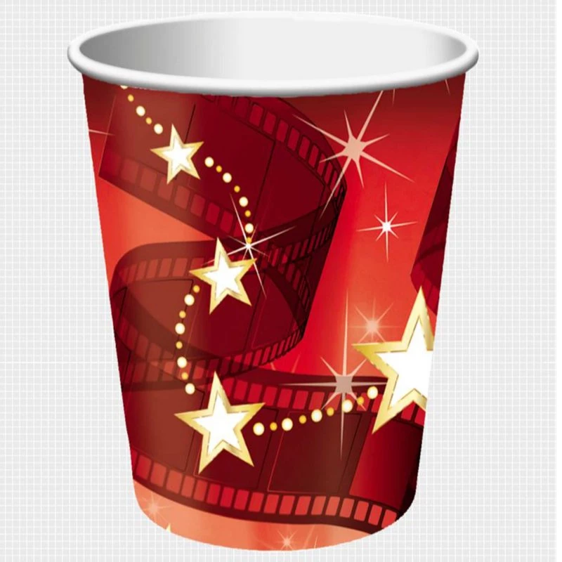 Lights,ย Camera,ย Action! These fun paper cups feature a hollywoodย design. Each cup is 14 x 8 x 8cm and holds 266ml (9floz). Each pack contains a total of 8 paper cups.