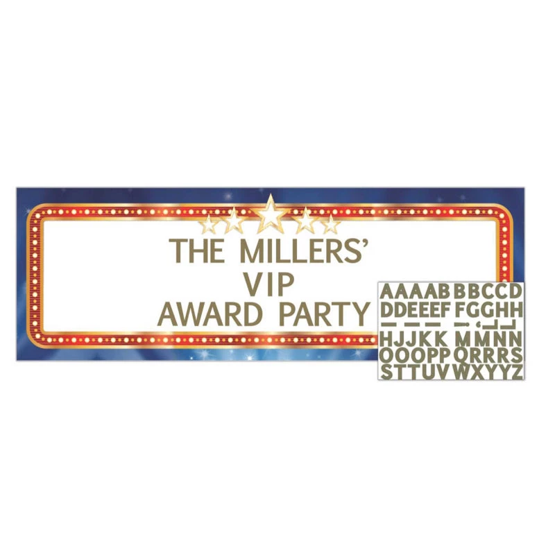 Hollywood Lights Giant Party Banner with Stickers. Each package contains 1 banner and banner size is approx. 60 in x 20 in (152.4cm x 50.8cm). Includes alphabets stickers for customizing your own banner.