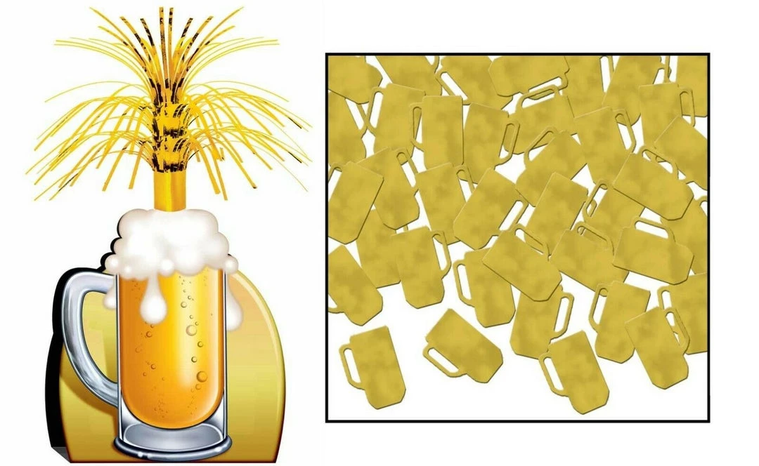 Cheers to this great decoration! This Oktoberfest Beer Mug Centrepiece will be great for the middle of your party table. This centrepiece features a golden foil cascade top with a cardboard picture of a beer mug.Â