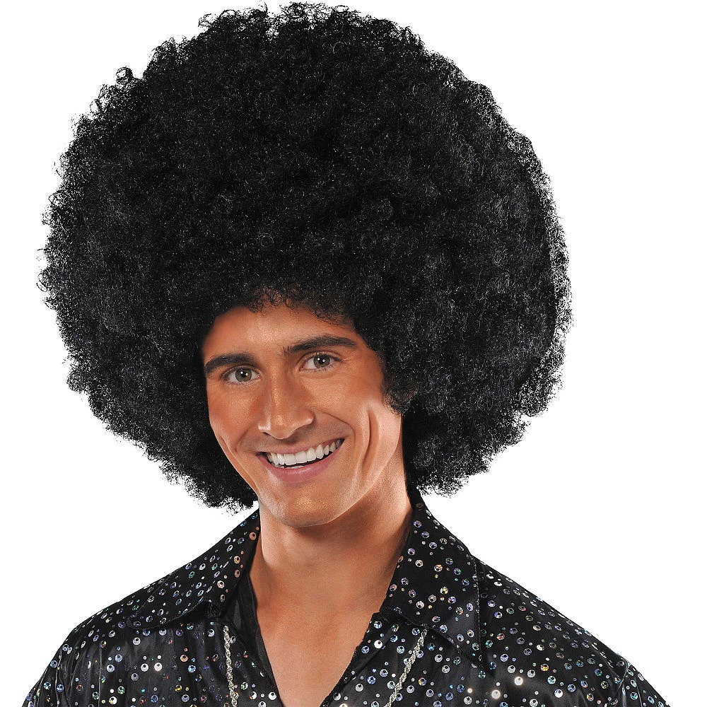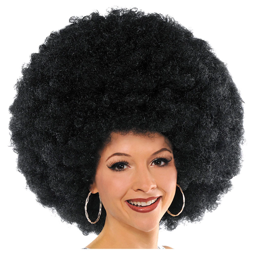 We’re not kidding! The Biggest Afro Wig Ever is so big that it has its own zip code. This jumbo size black Afro Wig offers warmth in the winter, shade in the summer, and is a monument to 70’s tonsorial excess. 100% synthetic fiber.