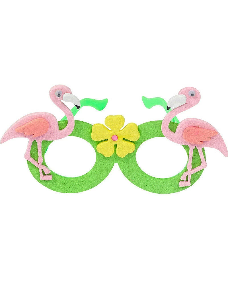 Get ready to flamingle with these Summer Luau Flamingo Foam Glasses that are perfect for the kids to wear at your next Hawaiian Luau or summer party. The lens-free glasses feature green plastic frames with green foam rims, as well as cute pink foam flamingos on each outer edge of the frames and a yellow foam hibiscus flower in the centre. These glasses are great for enhancing your child’s costume!
