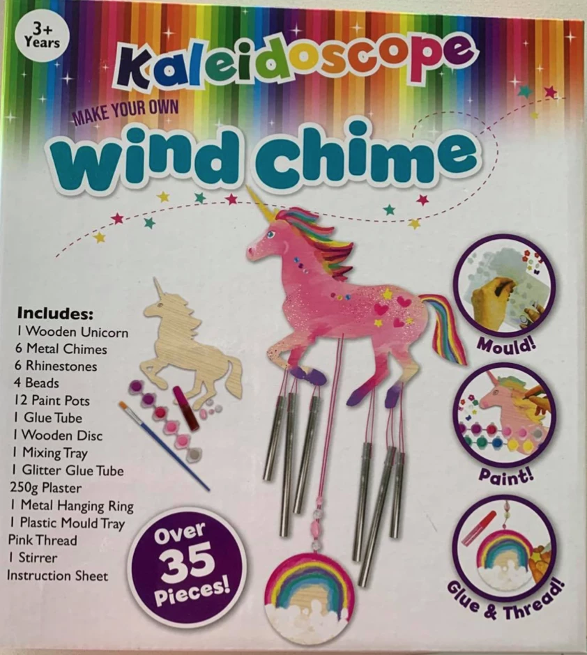 Children will love getting crafty with the Kaleidoscope Make Your Own Wind Chime Kit. This cool kit includes everything children will need to make one wooden butterfly wind chime, including six metal chimes, rhinestones, beads, paint pots, glitter glue, thread and much more.