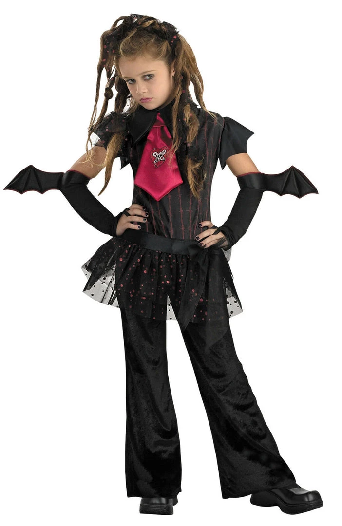 with bat wing accents. Hair ties and shoes not included. 100% polyester.