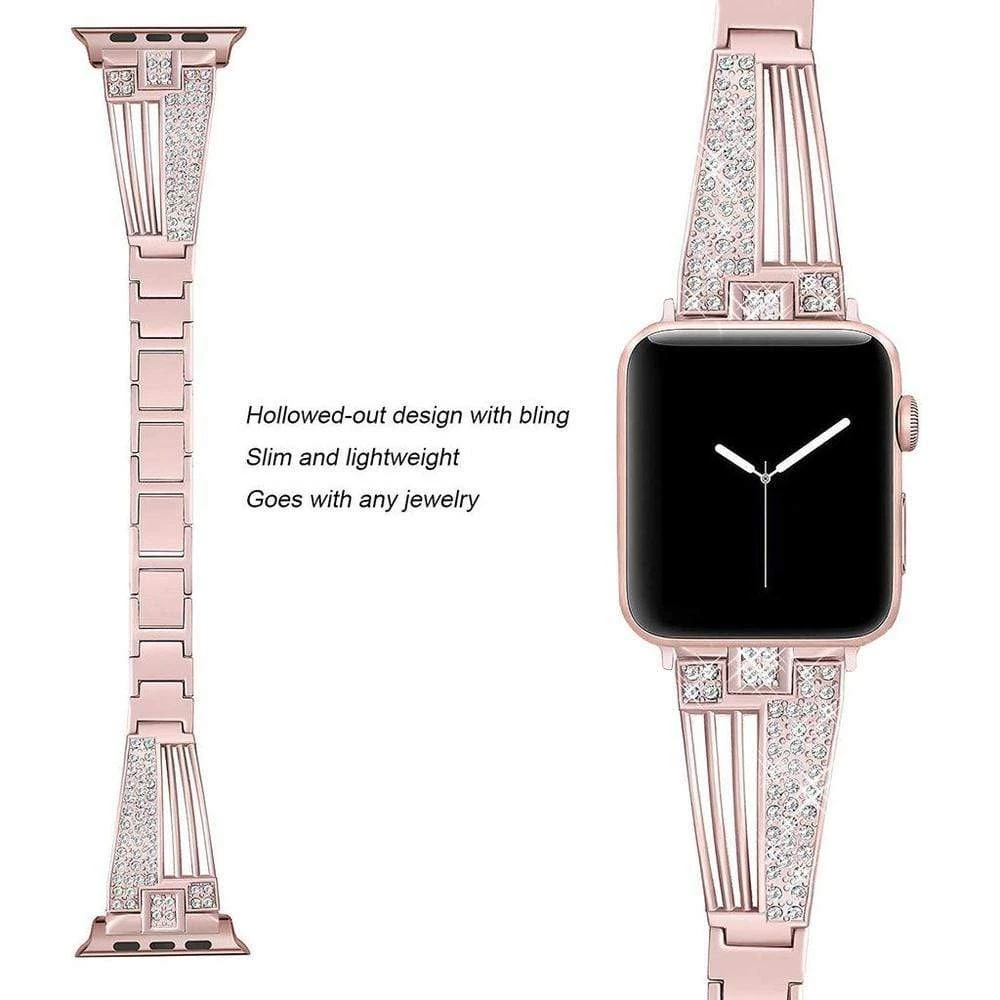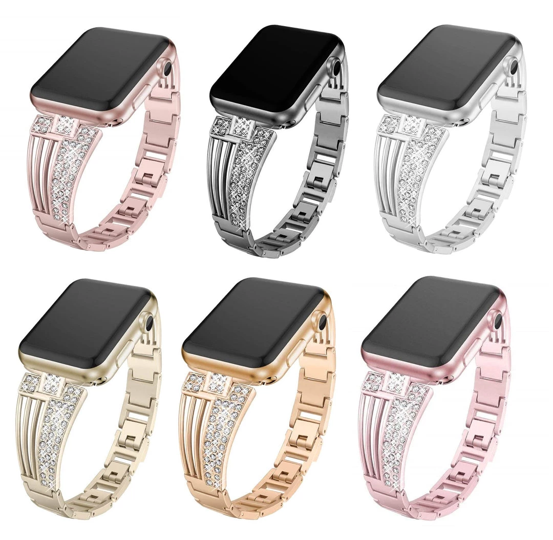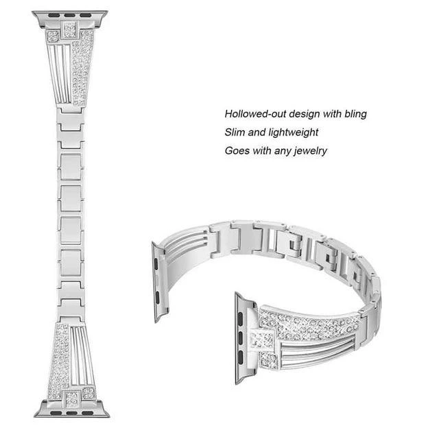 3. Elegant slim band set with rhinestones. Just enough bling to make it very fashionable. Makes your iwatch band look like jewelry.Â