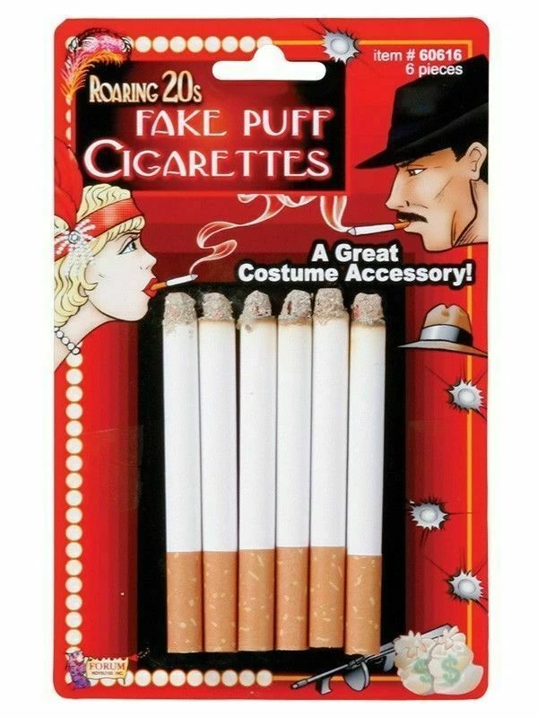 Make your Roaring 20s look smoking hot with these classic Fake Cigarettes.ย ย Each fake cigarette looks just like the real thing including a simulated lit tip. The safest tobacco around that won’t stain your teeth or kill you!
