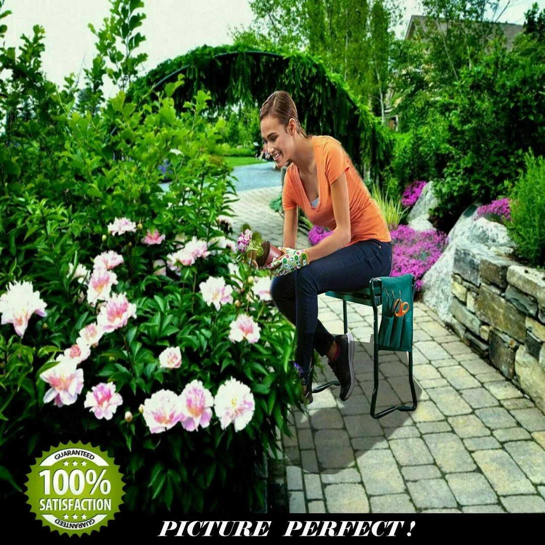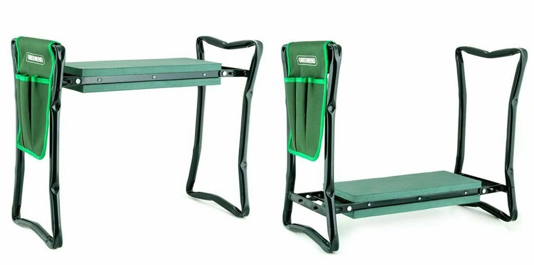 Have some extra help around the garden with this foldable seat and kneeler. Great for weeding your garden or taking a relaxing seat when watering. Take the weight and strain off your knees tending to plants and herbs with this timely helper. Made with a sturdy steel frame and a thick EVA foam pad for comfort, it only takes a quick flip to convert the kneeler into a chair. The removable tool pouch is handy for keeping your gardening accessories within easy reach, while the compact design folds flat for effortless storage.