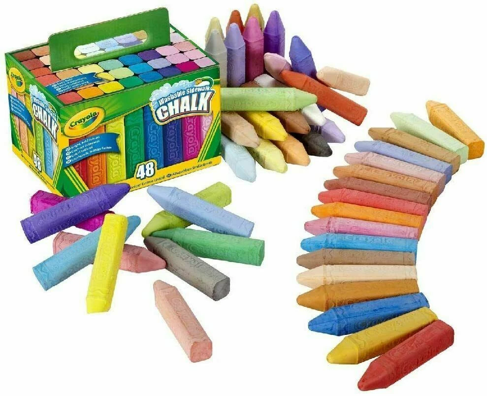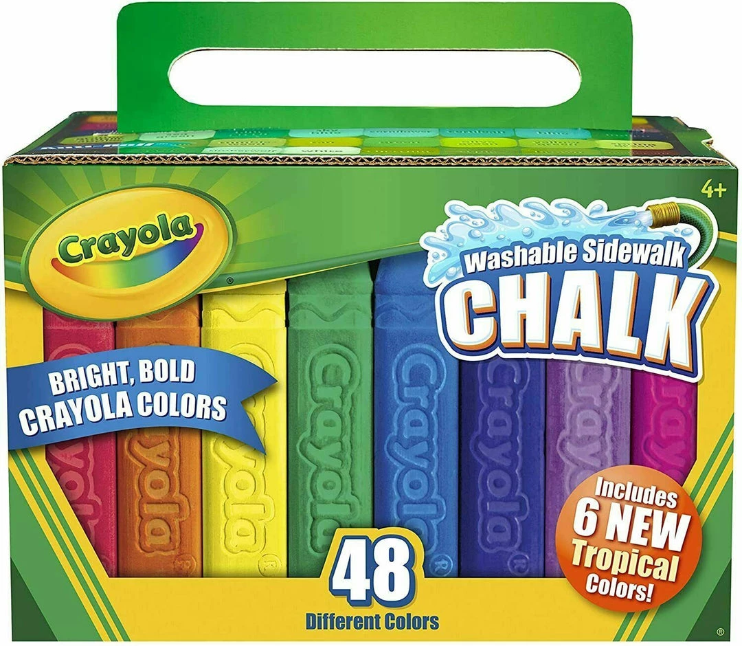 48 Bright and bold, including exclusive Crayola colours for outdoor art on sidewalks and driveways.