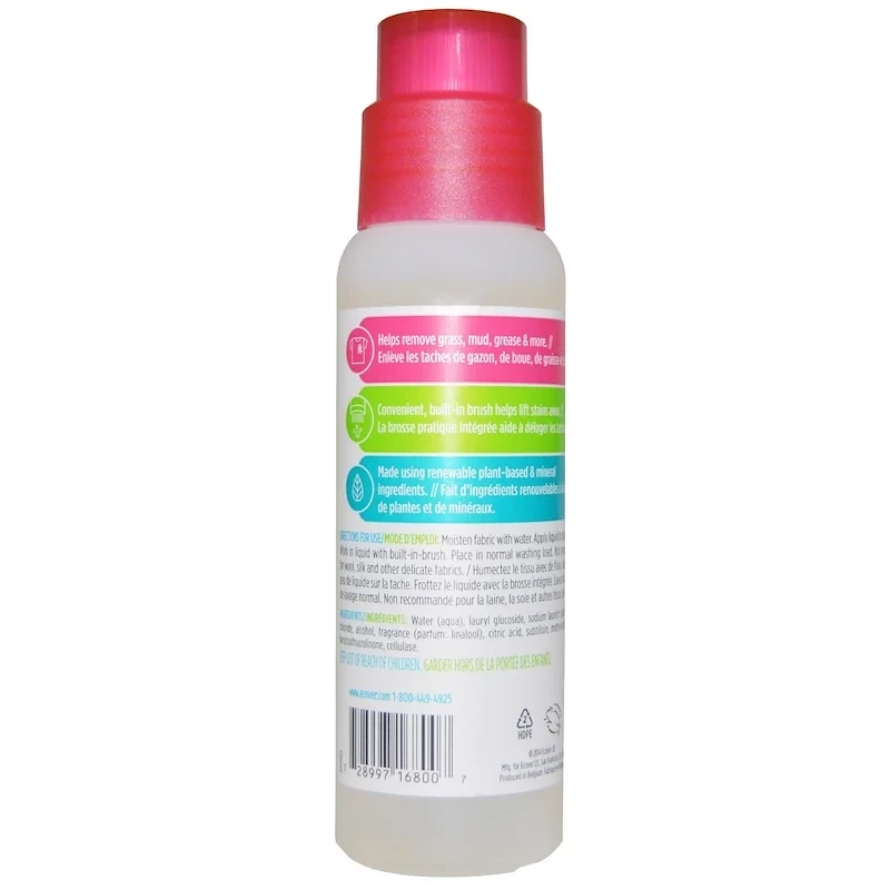 Moisten fabric with water. Apply liquid to stain sparingly. Work in liquid with built-in-brush. Place in normal washing load. Not recommended for wool, silk and other delicate fabrics.