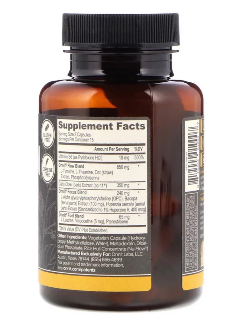| Onnit Flow Blend L-Tyrosine, L-Theanine, Oat (straw) Extract, Phosphatidylserine | 650 mg | * |