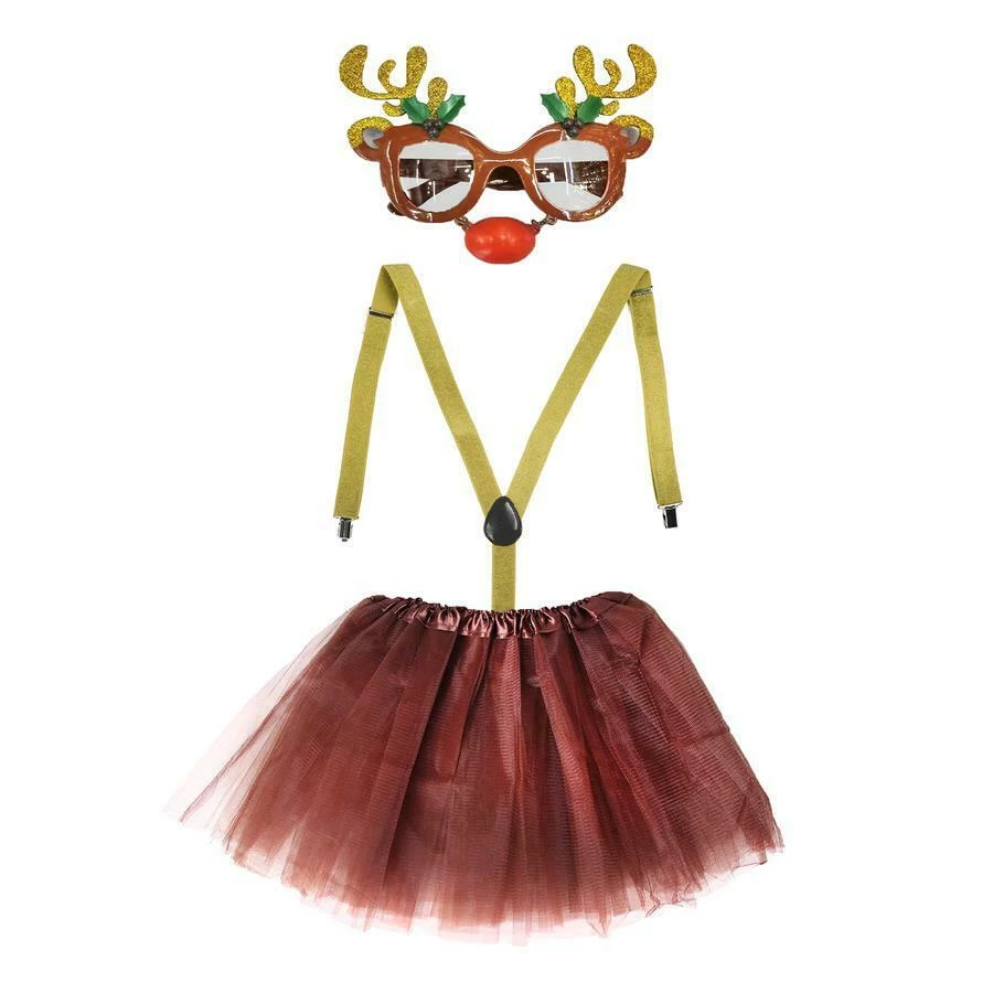 JD Party Christmas Rudolph Reindeer Tutu Size Small Girls Costume Kit Christmas Kids Costume