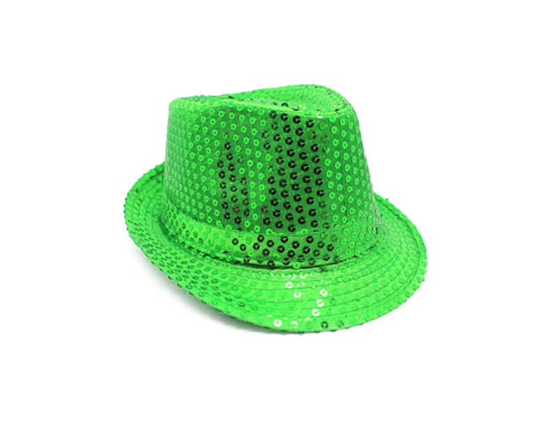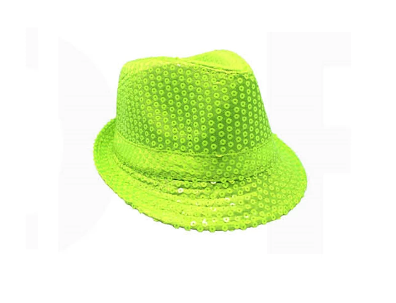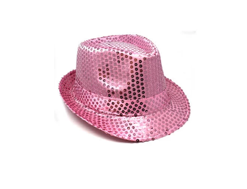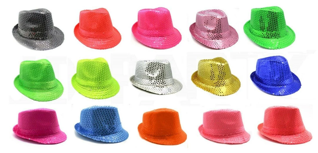 Our Sequin Trilby Hat has a classic look of a fedora/trilby hat: a pinched crown and a curved brim. Made of sparlky sequinned fabric, with a choice of various vibrant colours, this trilby hat is excellent for stage performances, disco parties, and any other fun events such as rave parties and carnivals. Â