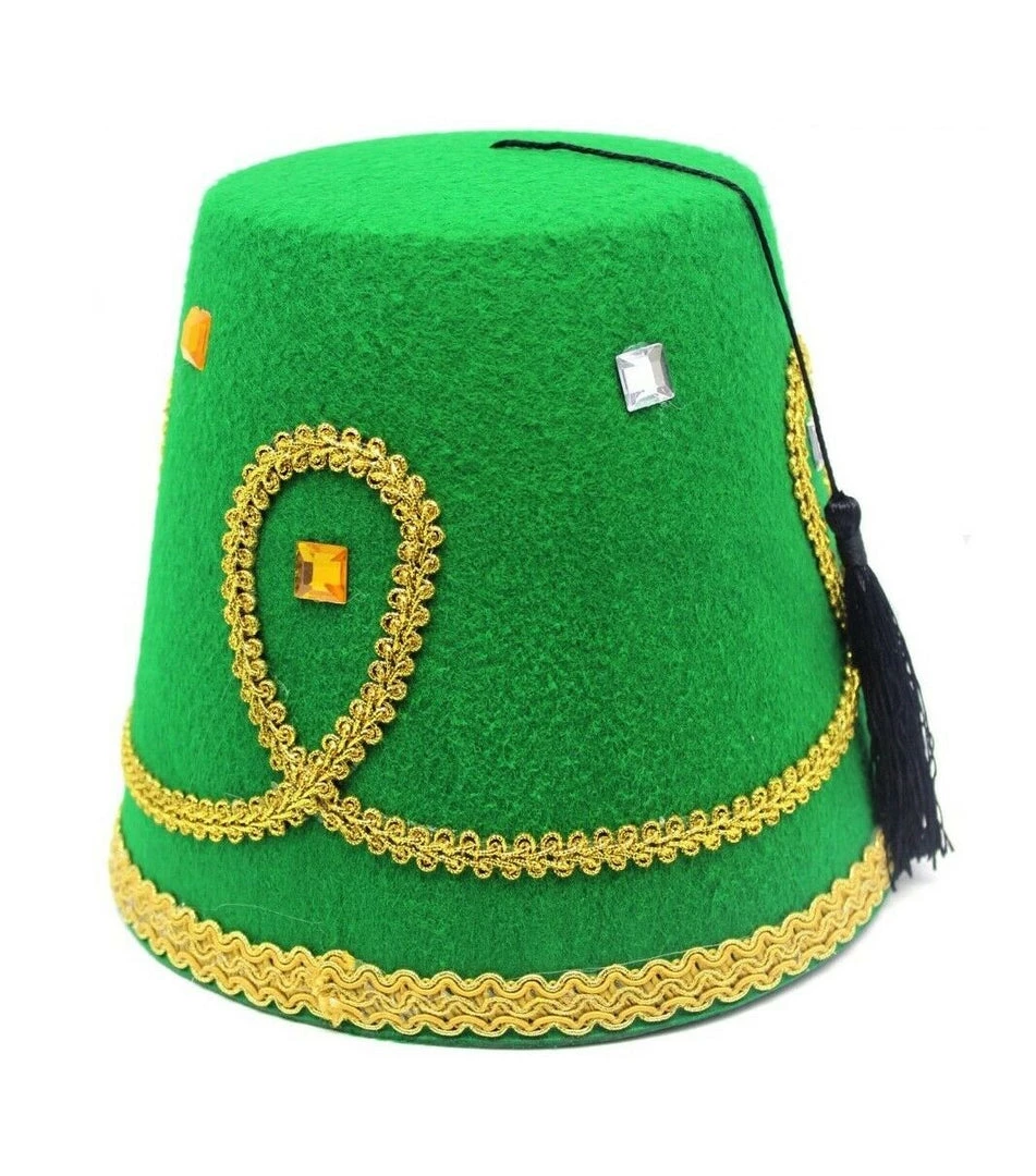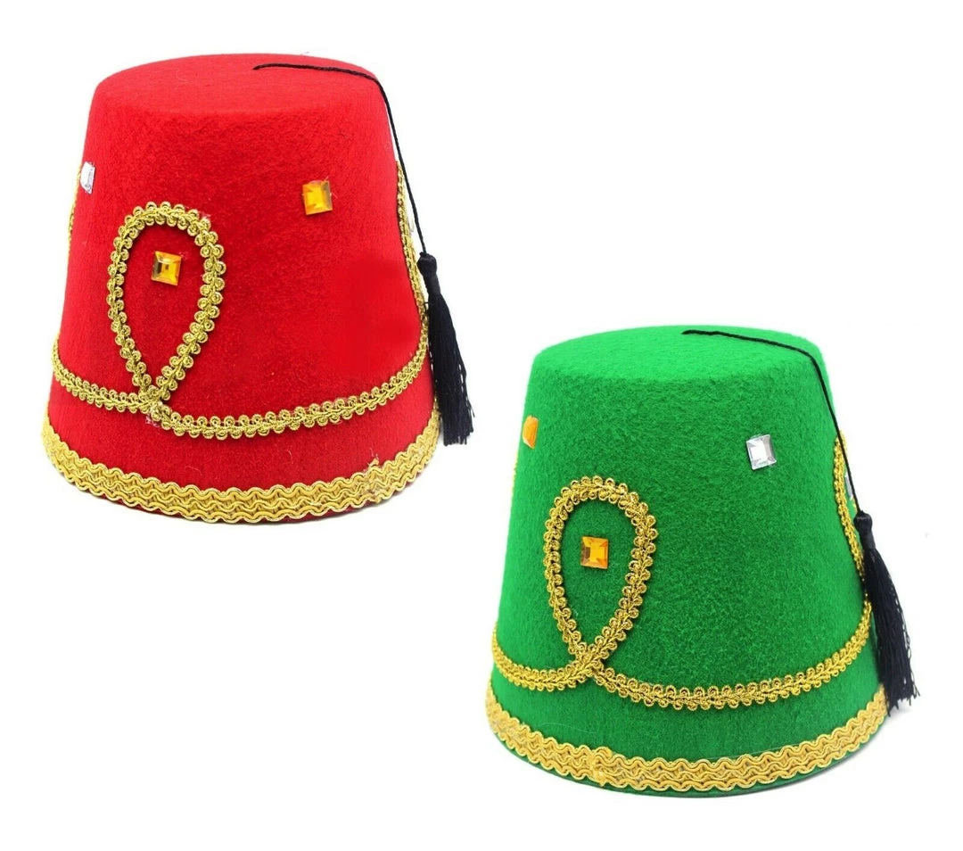 JD Party Deluxe Turkish Hat Red Green Fez Tarboosh Dress Up Costume Party Moroccan Costume Accessories
