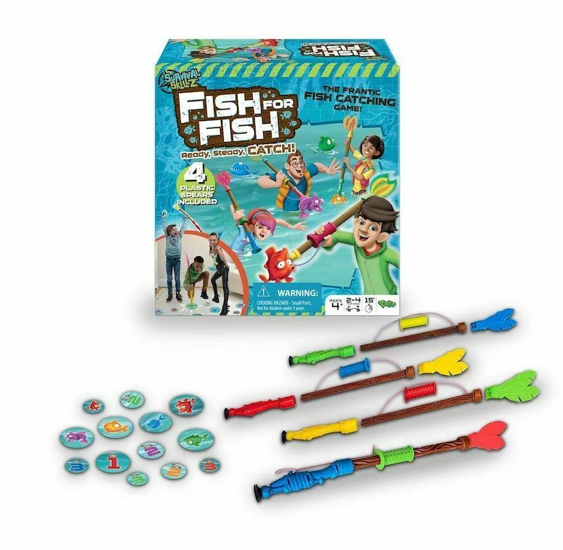 Fish For Fish is a two to four player game suitable for ages four and up. Itโs a fast paced, fun game that can last up to fifteen minutes.