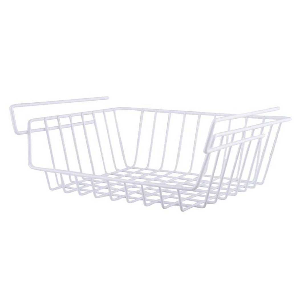 This wire basket can used in a pantry or placed on the kitchen countertop to store fruits or veggies.