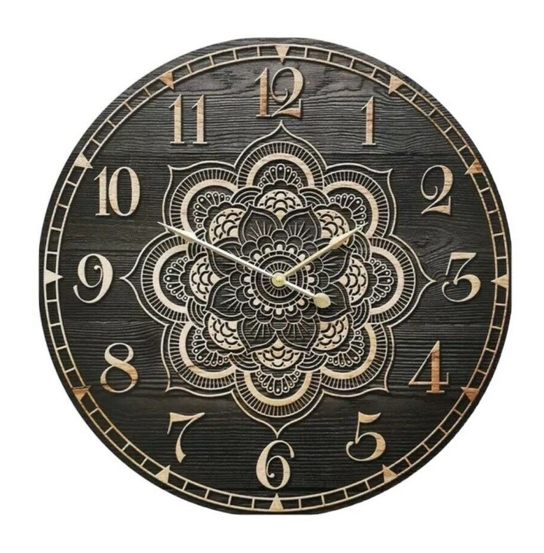 ย ย ย โขย ย ย Features a beautiful Moroccan-inspired Mandala Black Wooden Wall Clock