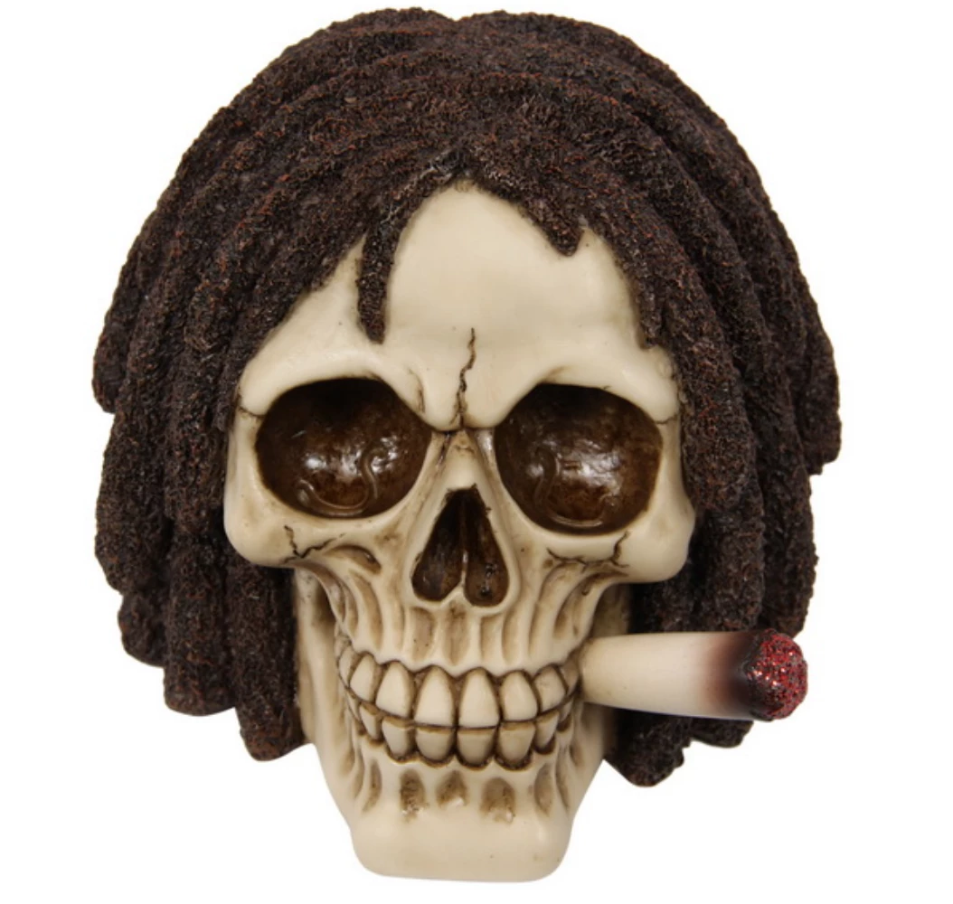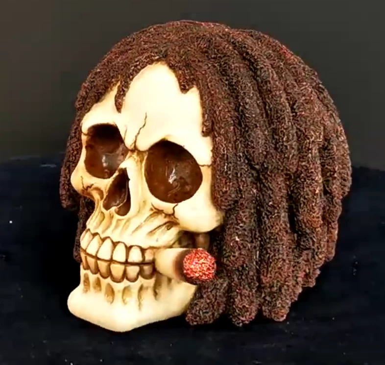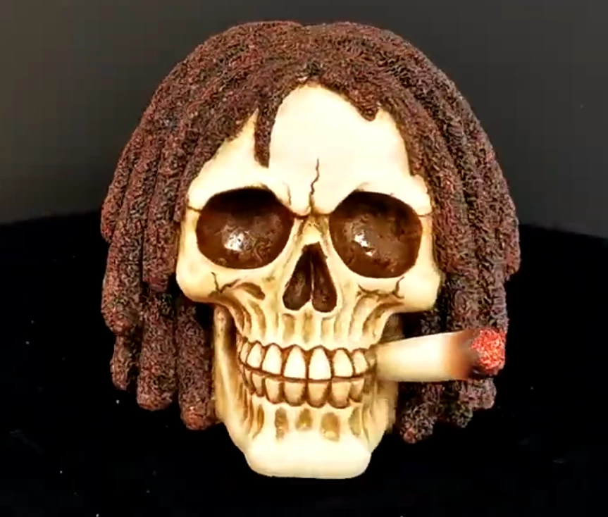 This Skull head Of Bob Marley smoking a Lit Joint is made from poly resins and the detail is amazing.