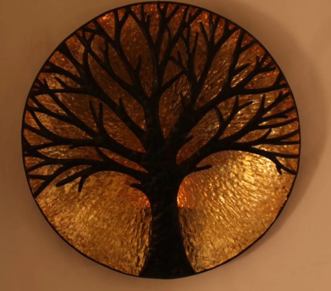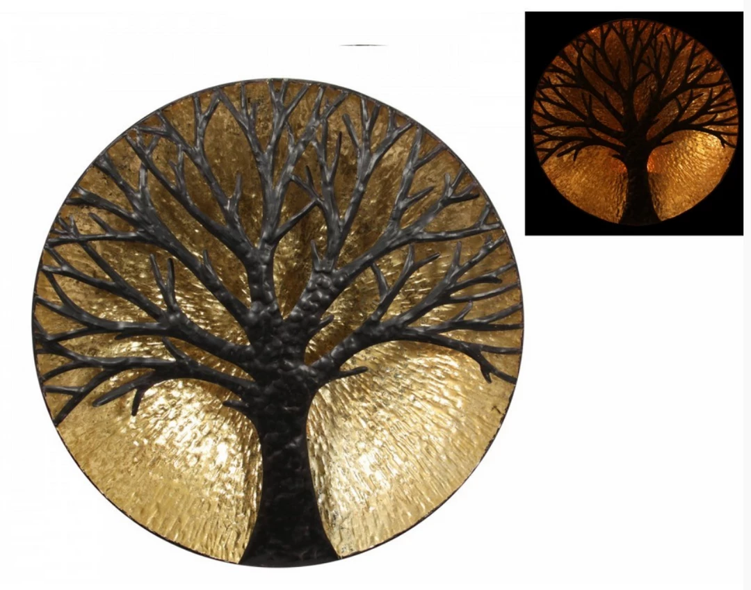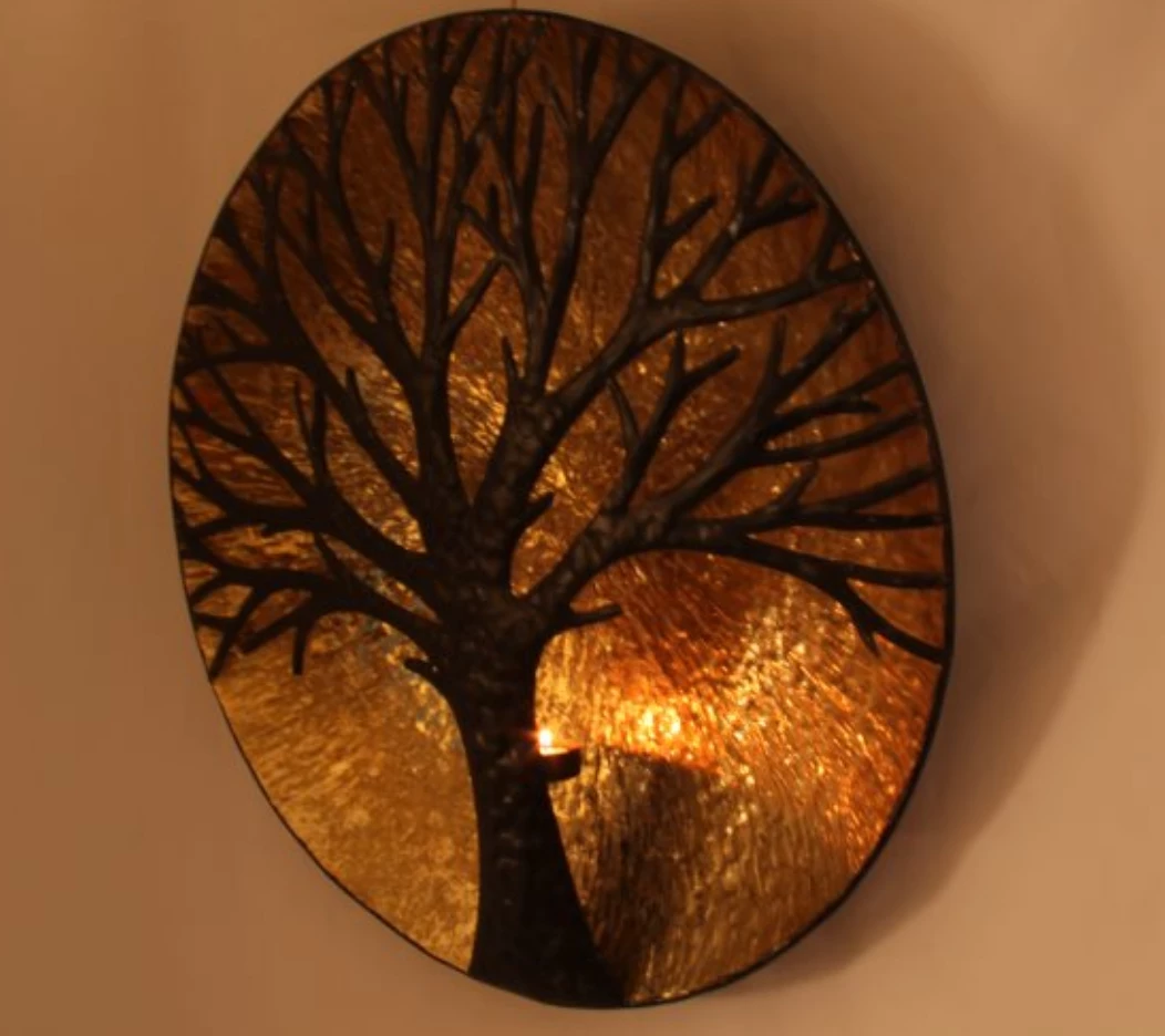 This piece has a shimmering gold background, which is beautifully contrasted by the brown Tree of Life. It also has a holder at the rear for a Tea light Candle