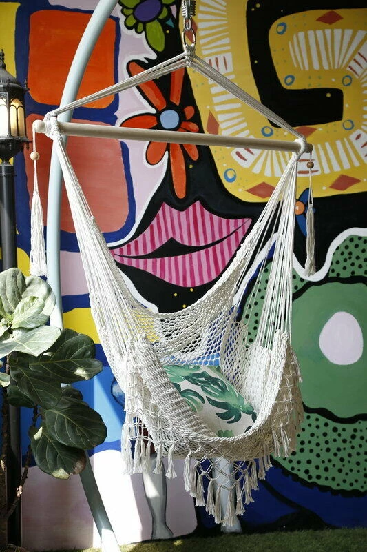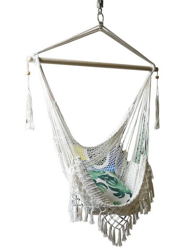 MALMAR 130cm Hanging Macrame Chair In White Boho Themed Home & Garden