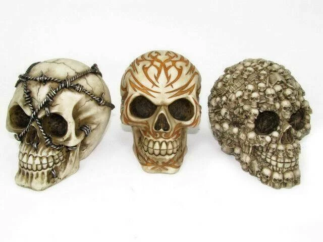 - Skull Head Statue Ornament Set Of 3.
