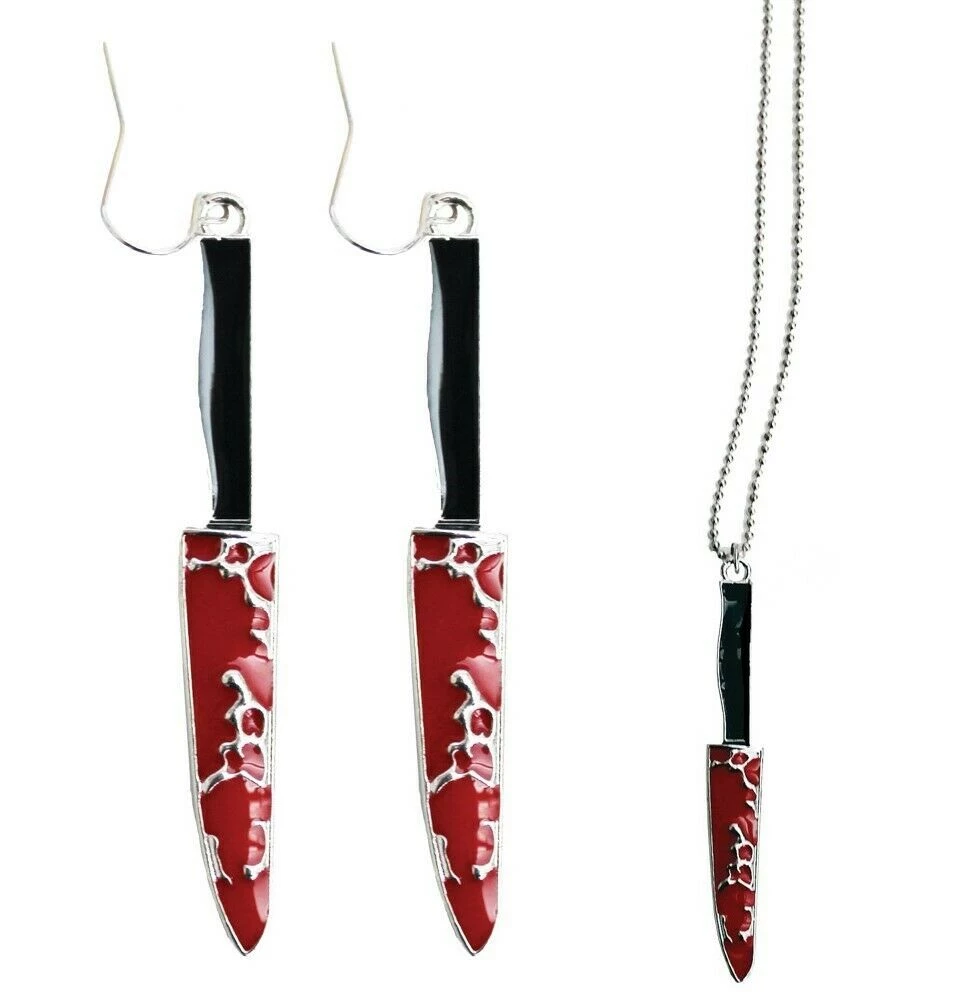 Morris Costume Accessories Metal Bloody Knife Necklace And Earrings Halloween Costume Accessory