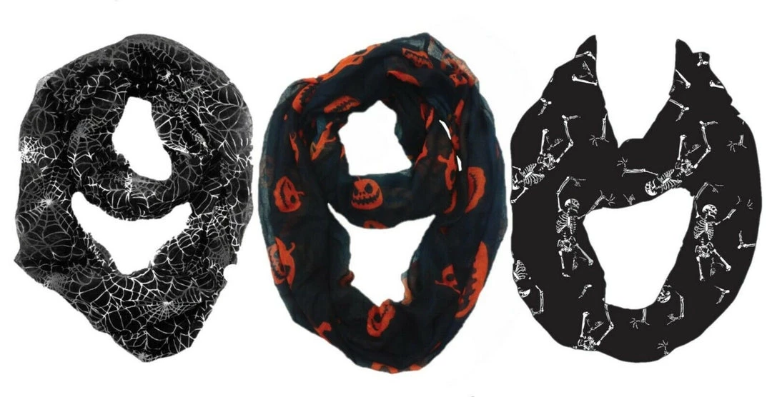 | Type | Pumpkin Infinity Scarf, Spider Web Infinity Scarf, Dancing Skeleton |