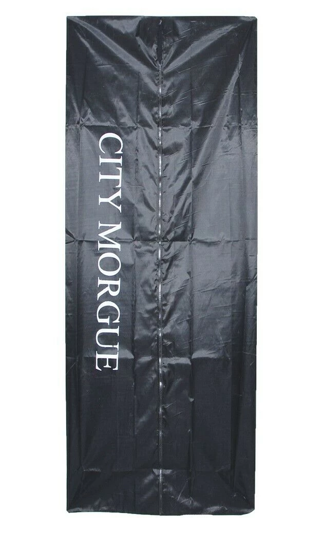 Decorate your haunted scene with this City Morgue Body Bag decoration. This spooky dรฉcor will add a morbid touch to your haunted display. Perfect for your haunted scenes, parties, plays and productions. The Body Bag prop by Sunstar features a 6โ body bag in black with City Morgue print along the side in white lettering for an authentic look. Measures approximately measures 72โ L x 28โ W.