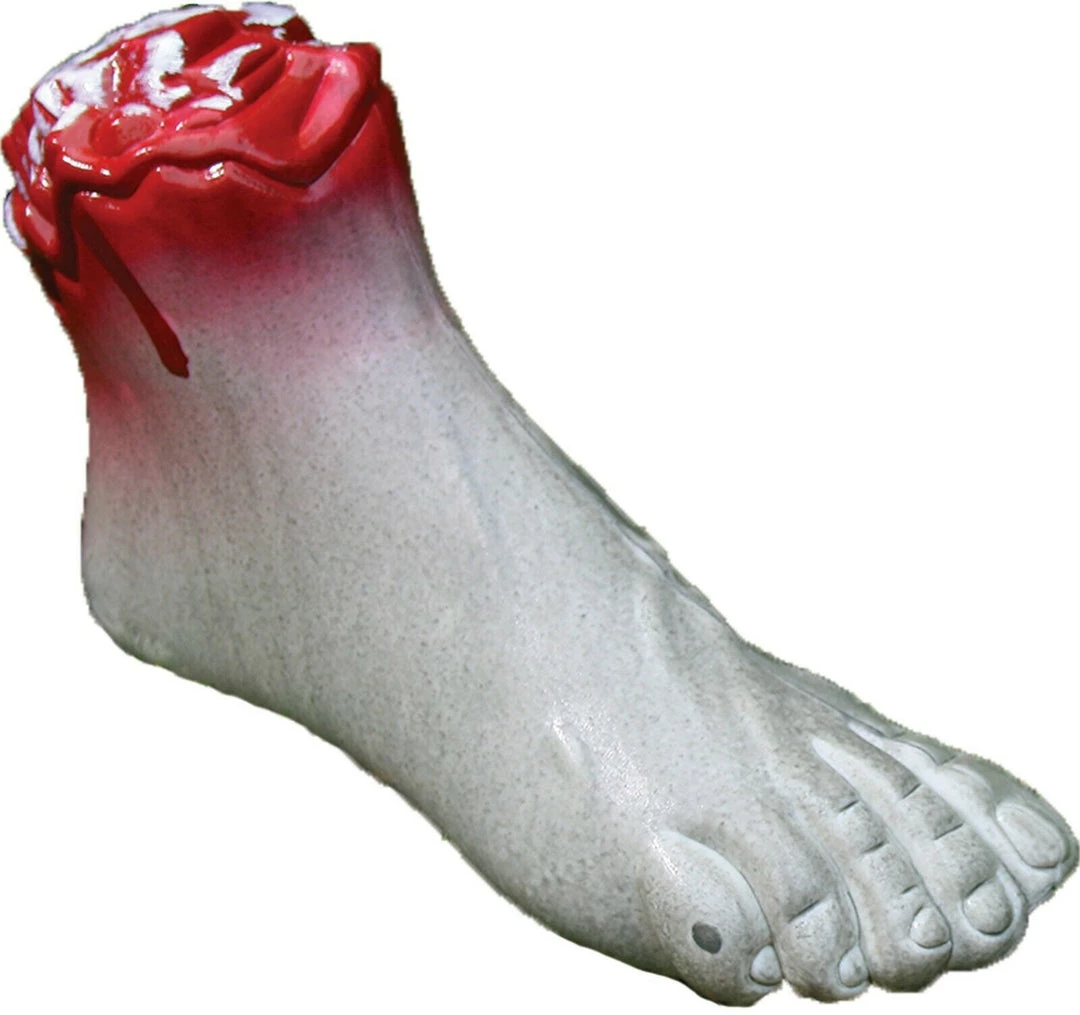 White zombie foot with blood near the ankle is perfect for any haunted display and gives the distinct impression zombies have been lurking nearby. 100% Polypropylene.