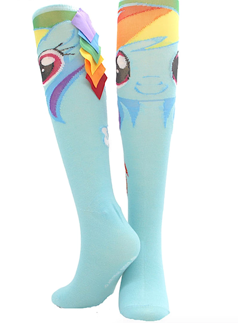Get read for crazy sock day with these unique knee high Rainbow dash knee hi socks