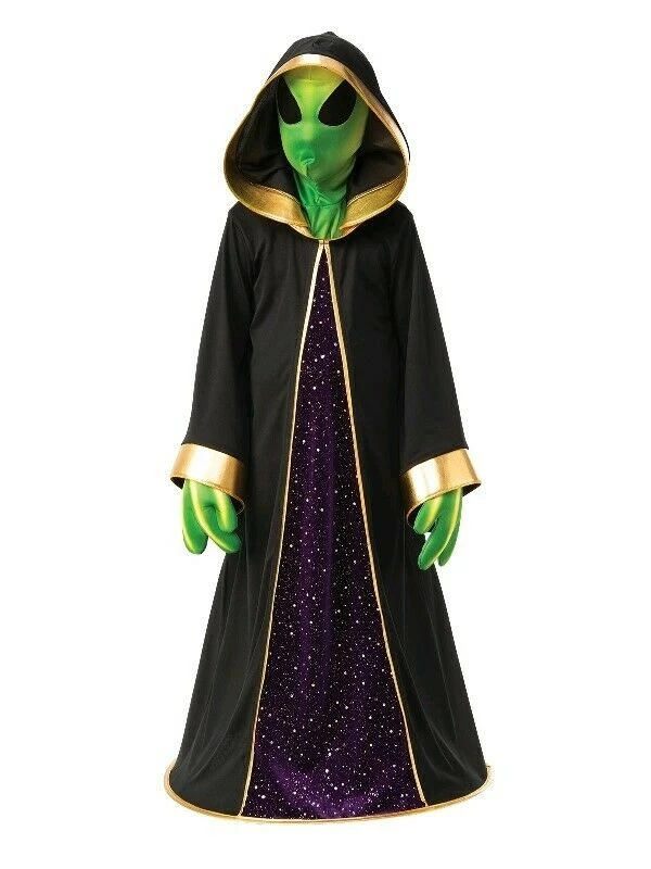 - Full length hooded robe in polyester fabric with gold details at hood, collar and centre panel plus glittery stars in purple panel from chest to ground