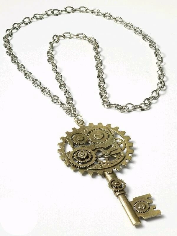 - GOLD PAINTED NECKLACE OF COPPER KEY WITH COGS