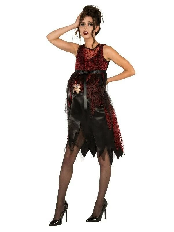 A very cool and somewhat disturbing costume for Halloween! A standard sized dress for women with built in tummy and mutant monster baby popping out… and he is watching everything around him! Beware!