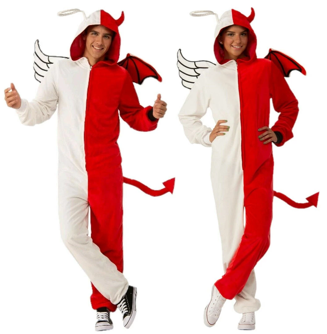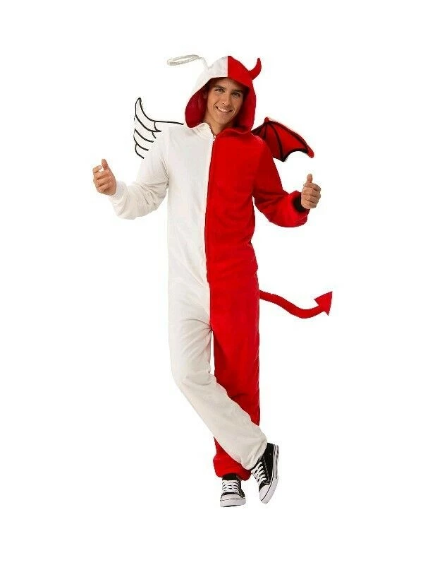 Good or Bad? Naughty or Nice? Right or Wrong? Can’t decide? No problems. In this half-half costume, you can turn on your angelic side under the halo of goodness or perhaps switch to your evil side and flare up that red horn of naughtiness. Either way, you’ll have tongues wagging at your next novelty dress up day or Halloween party in this cool onesie.
