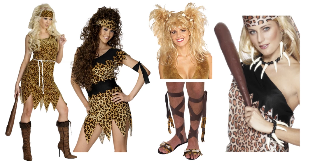 - Going back to the days of the Neanderthal people with Smiffys Cave woman Costume. The costume includes a Leopard Print Tunic, matching Headband, a brown/black jagged cut belt and a black Armband.