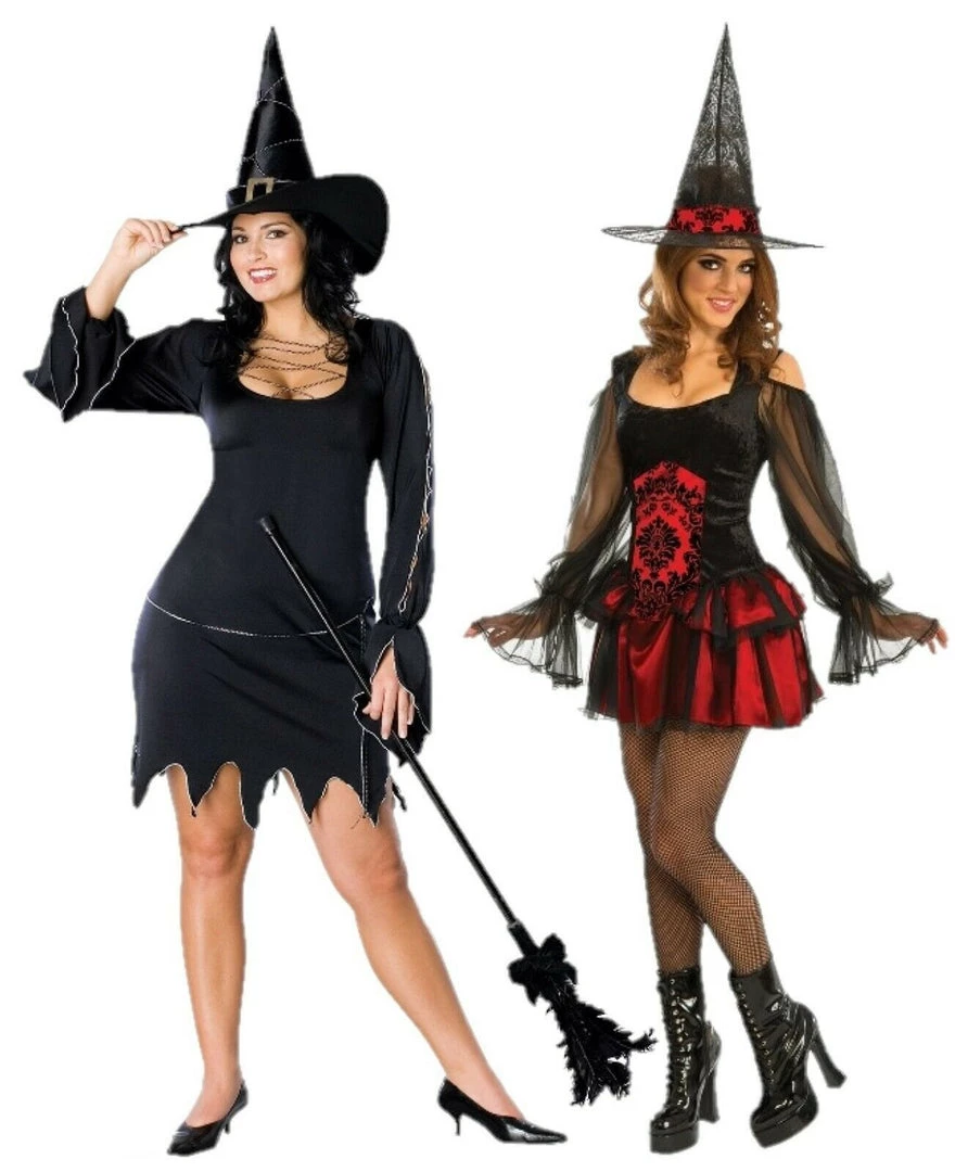 - Witch hat is tall and pointed moulded lace material and matching wide band in red and black