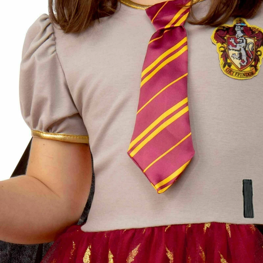 - Dress features an attached organza tutu with underlayer and sparkly, glitter print of lightning bolts and House emblem printed on the chest