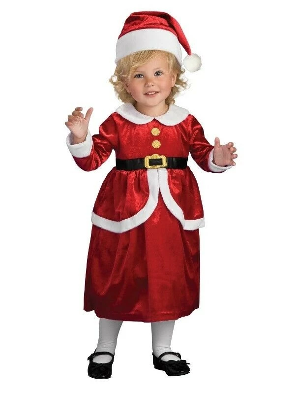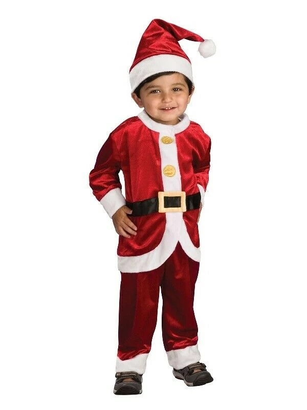 - Attached fabric belt with mock gold buckle plus hat with white trim and attached pom pom