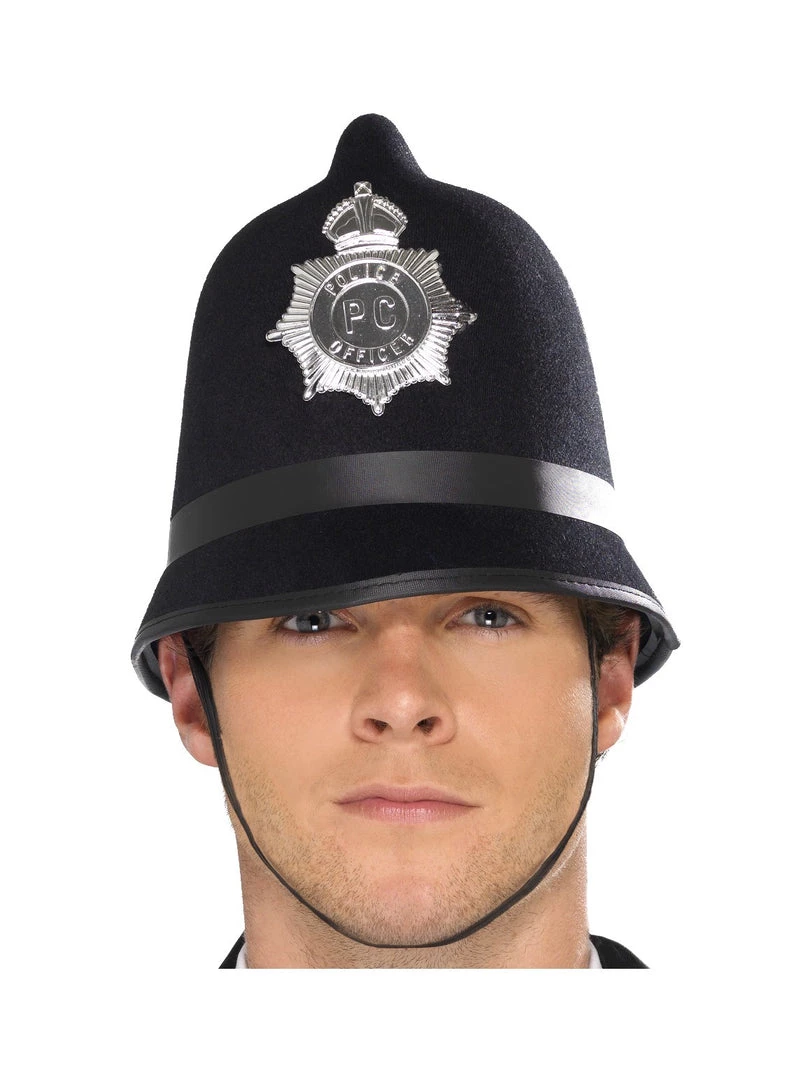 Allo, Allo, Allo… What ‘av we ‘ere? Put on your best British accent and dress up as a local English policeman in this black Bobby hat for adults. Complete with a silver police officer badge on the front, this traditionally styled Bobby police costume hat is the perfect fancy dress accessory to get you that London look! Well…. the London cop look anyway!