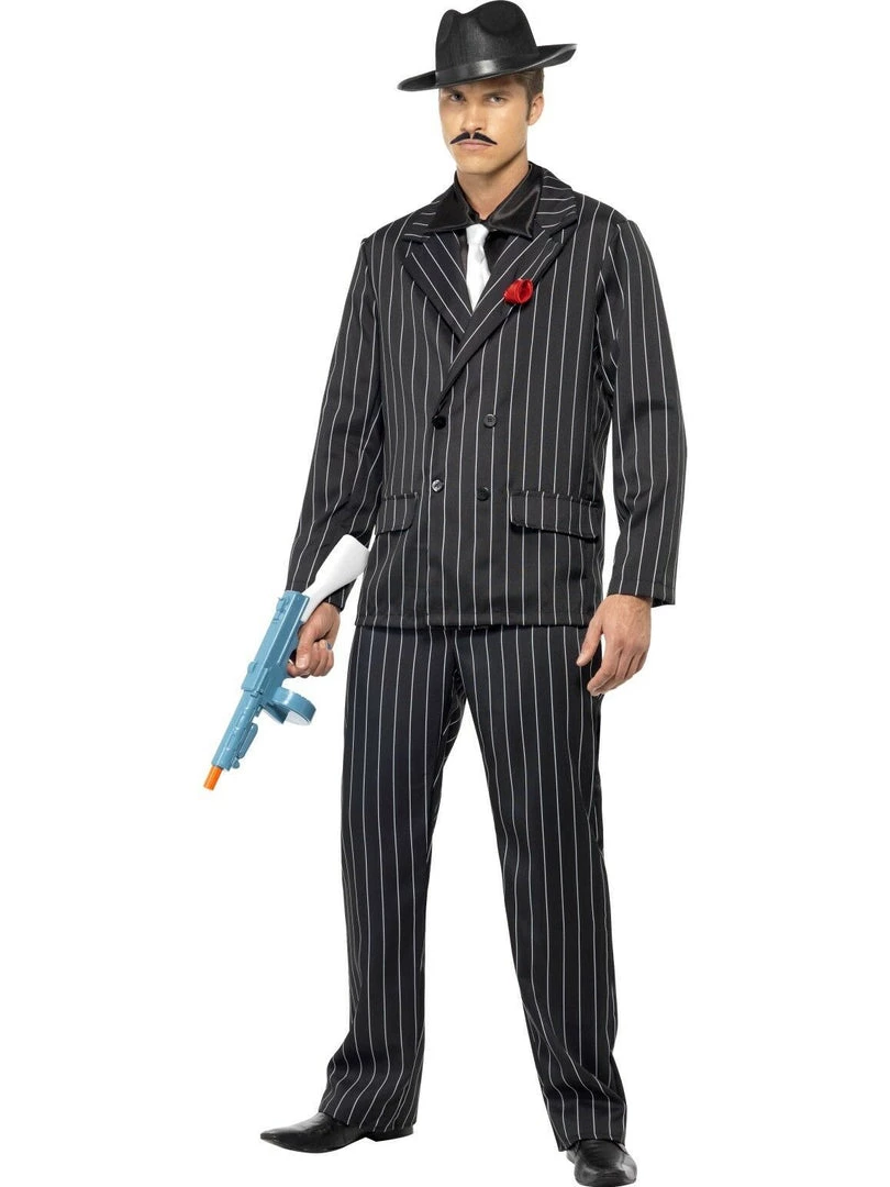 White Pin Striped Jacket , matching Trousers, Shirt Front & Tie. With a