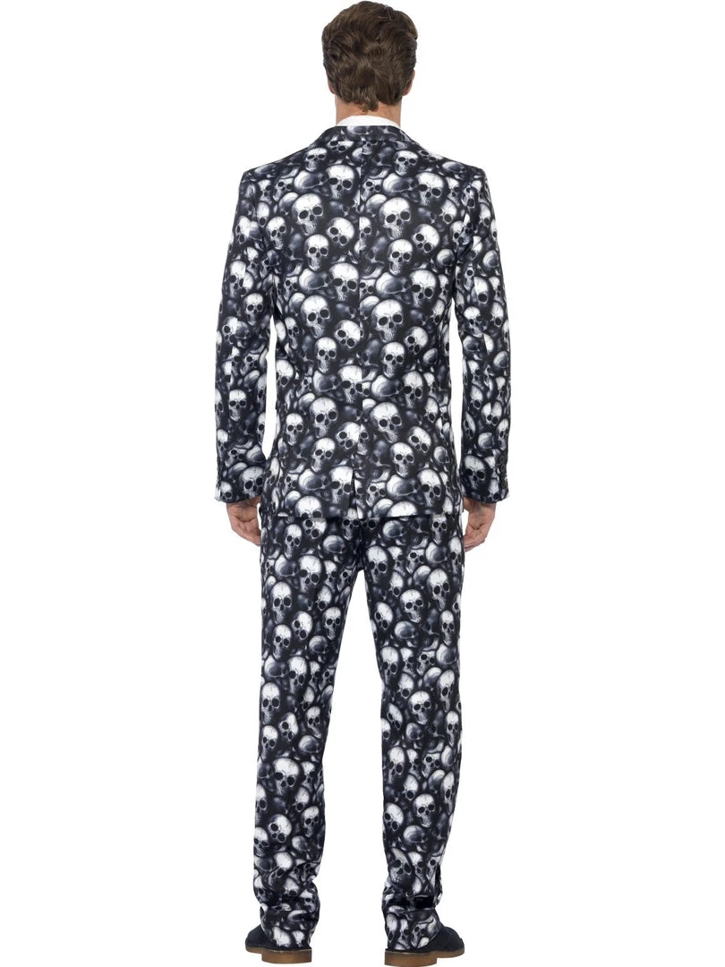Look smart for Halloween in our Skeleton Stand out Suit with the Skull print jacket, matching Trousers and Tie.