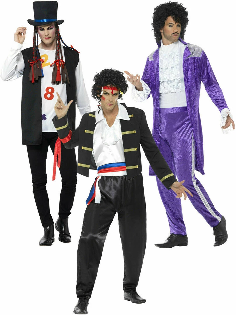 Adam Ant includes black jacket with gold detailing, a pair of black satin style trousers with an elasticated waist, a white satin style shirt with large collar and jabot and a red ribbon headband. Wig not included.