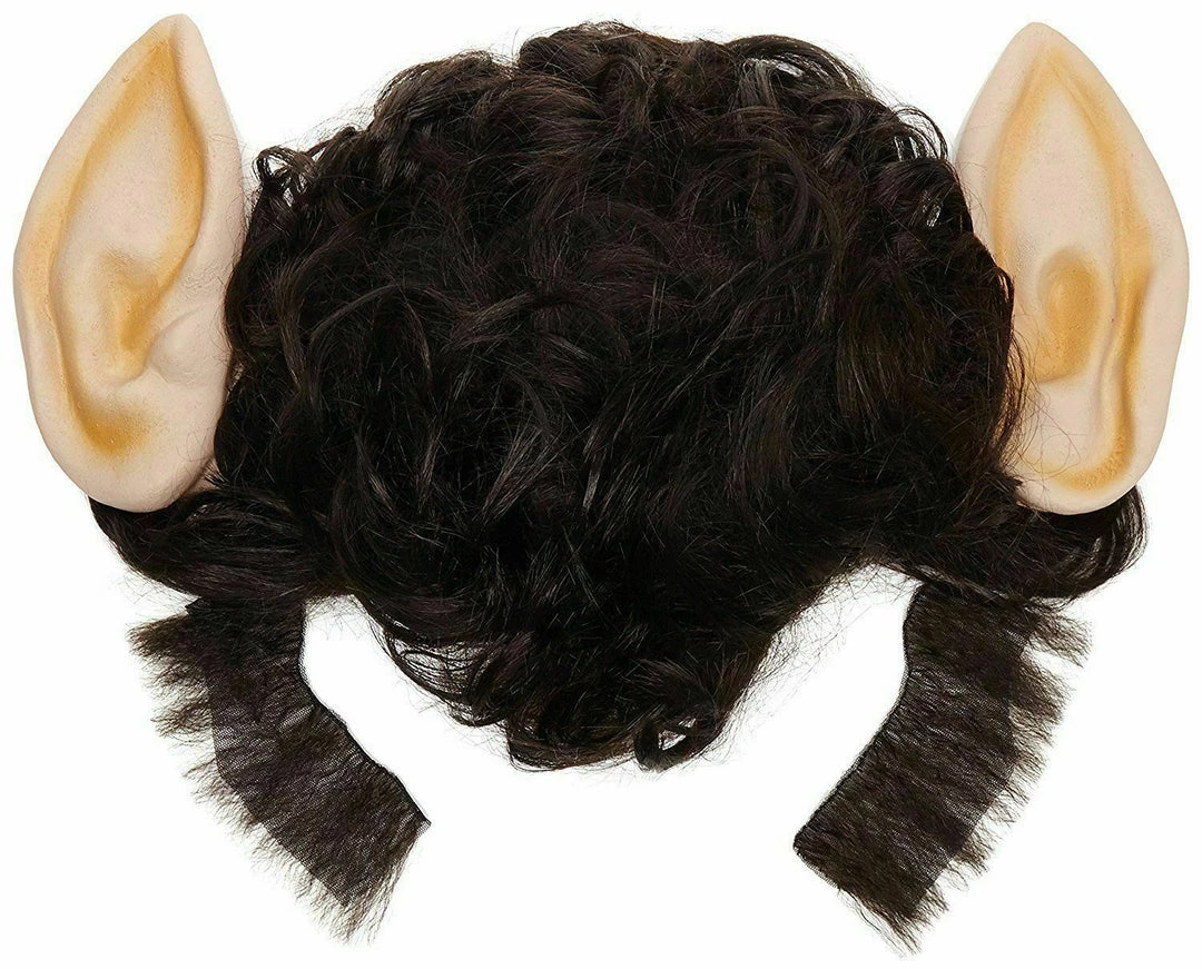 Smiffys Werewolf Wolf Wig Attached Ears Sideburns Black Curly Wig Halloween Costume Wig