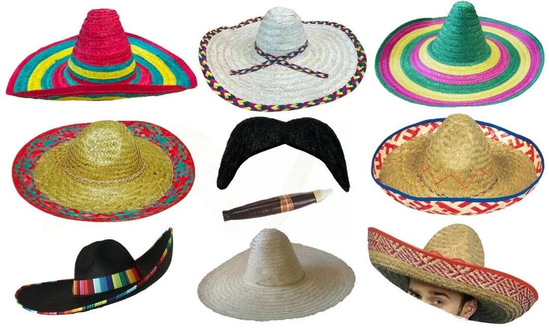 Finish off your Mexican costume in style with a large straw Mexican sombrero hat, Mexican, moustache and fake cigar Perfect costume set for any international Mexican or sports themed costume party or event! Â