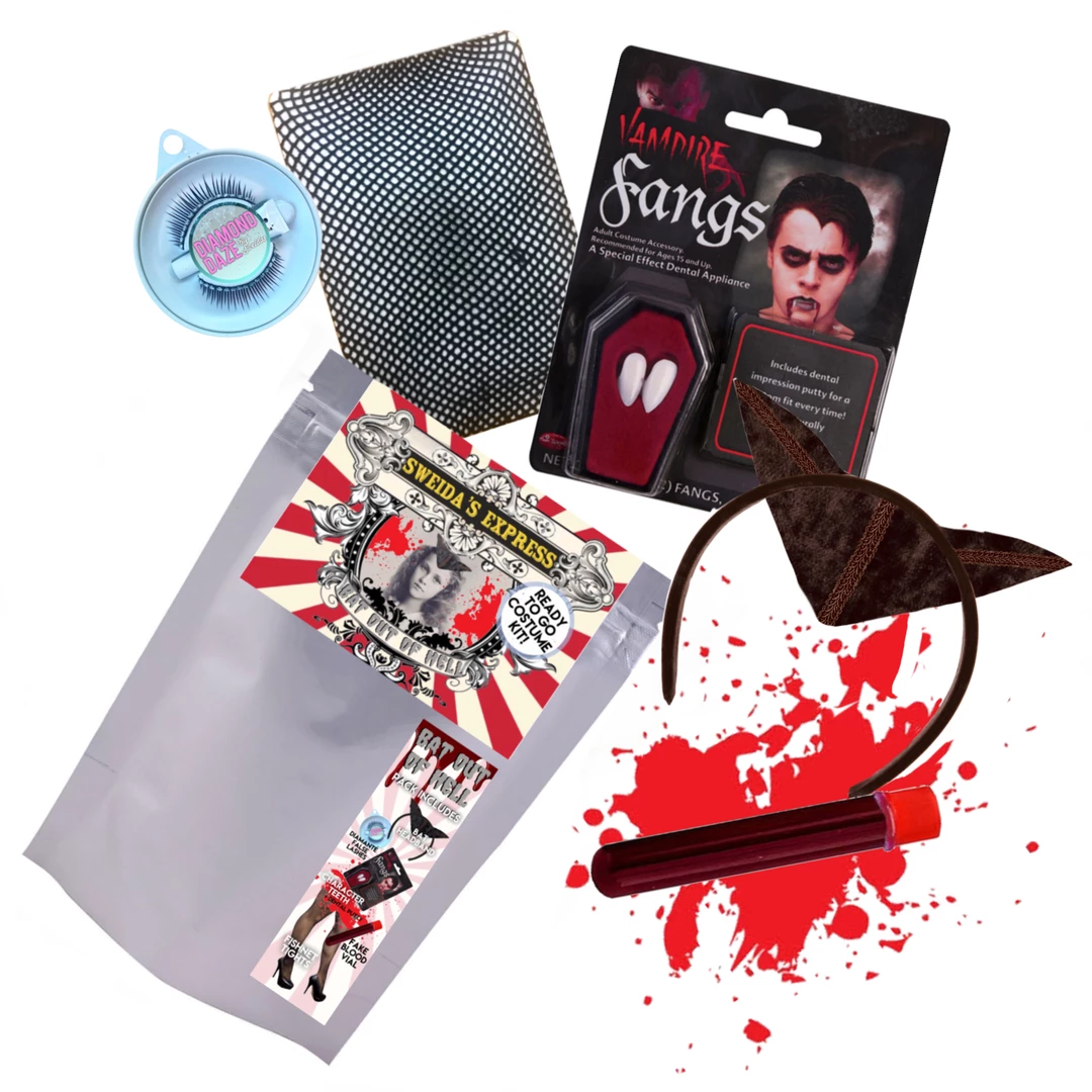 - Bat fangs are also included with dental putty.ย